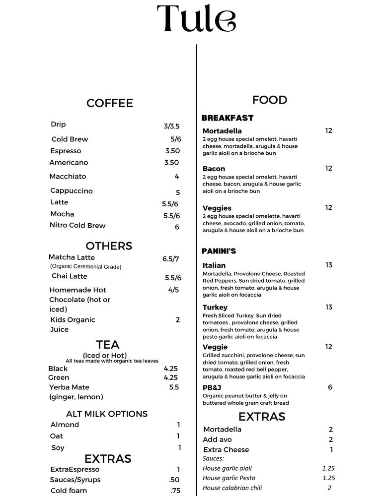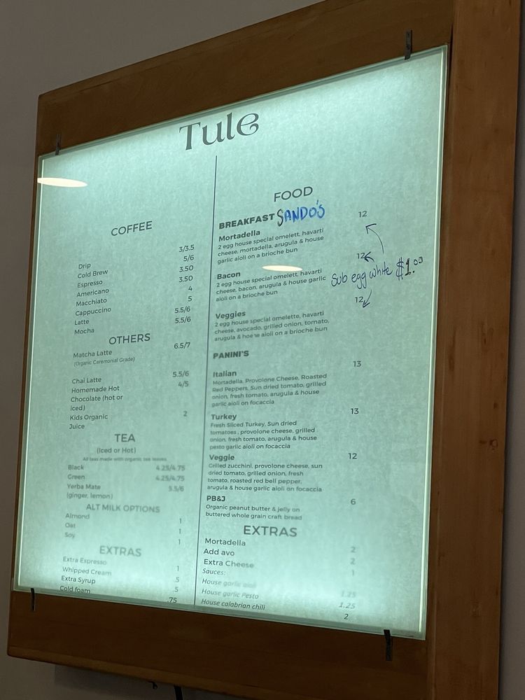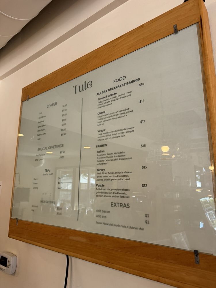 Tule Coffee House, located in Elk Grove, CA, is a cozy breakfast and brunch spot known for its delicious sandwiches. With a focus on accessibility and sustainability, Tule offers ADA-compliant facilities, QR code menus, and plastic-free packaging. Customers praise the spacious outdoor seating area, quick and attentive service, and large portions of food. Reviewers recommend trying the matcha drinks, Italian Panini, and decadent pastries. The cafe exudes a warm and welcoming vibe, making it a perfect spot for a quick bite or to relax and work from home. Whether you're a coffee enthusiast or looking for a new brunch spot, Tule Coffee House promises a delightful experience.